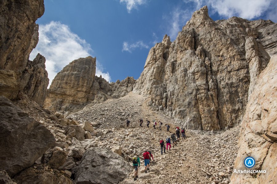 В походе вас сопровождает горный гид Альписсимо - профессионал с многолетним опытом и увлеченный горами человек. Наши гиды в Доломитовых Альпах - это преимущественно итальянцы, говорящие на хорошем английском языке. Гиды имеют профессиональные лицензии и работают в соответствии с национальными нормативами.