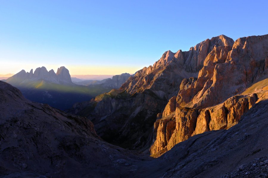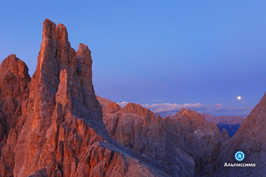 В этом походе вы каждый день вы проходите через новую горную группу, а всего их на маршруте шесть – Монцони, Мармолада, Селла, Сассолунго, Антермойя и Розенгартен. Все эти массивы не похожи друг на друга, и во время похода вас ожидает разнообразие ландшафтов и пейзажей. Вы побываете у подножия Мармолады, увидите лунный ландшафт группы Селла и поднимитесь на ее самую высокую вершину, обогнете Сассолунго и пройдете дикими тропами по ущельям и через перевалы массива Антермойя.