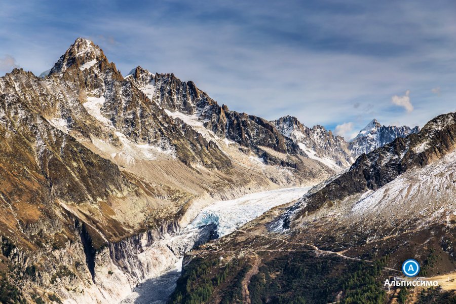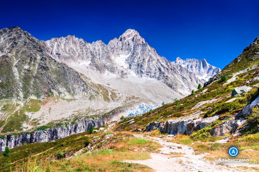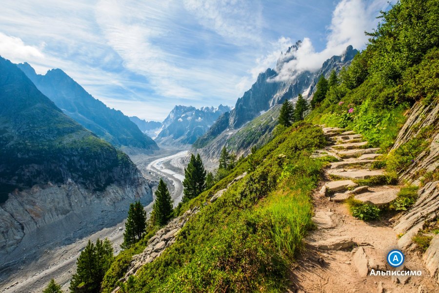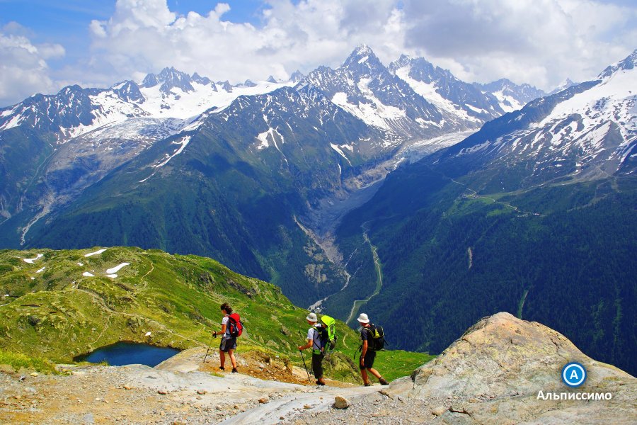 День 8: Панорама МонбланаПодъем 800 м. Спуск 1670 м. Протяженность 16 км. Время на маршруте 7 ч. Протяженный маршрут сегодняшнего дня проходит по тропам на склонах массива Эгюий Руж напротив Монблана. На этом участке трека располагается популярная видовая «площадка» Ле Бревен – легко доступная возвышенность с масштабной панорамой Монблана. Сегодня у вас будет возможность рассмотреть в деталях ледники Монблана, и в том числе – Гласьер де Боссон. Это ледник с самым значительным перепадом высот в Альпах: его язык достигает лесного пояса, доходя до уровня около 1650 метров. |