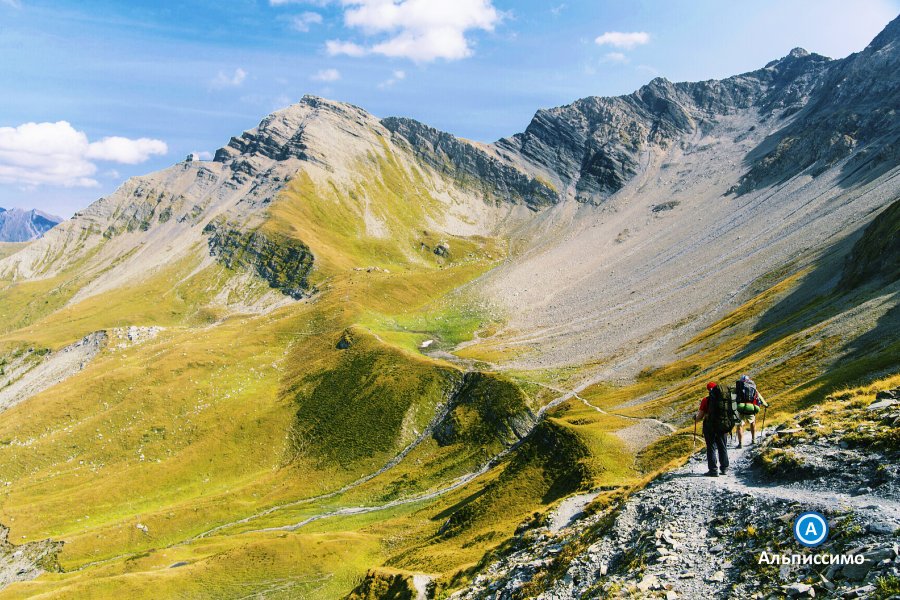 День 3: Перевал Гран ФерреПодъем 890 м. Спуск 930 м. Протяженность 17 км. Время на маршруте 6 ч. Сегодня на маршруте – первый перевал – Гран Ферре на уровне 2537 метров. Через Гран Ферре проходит граница Италии и Швейцарии. Практически весь день маршрут идет по высокогорью, только к концу дня спускаясь в лесной пояс в – швейцарскую долину Валь Ферре. В целом, на маршруте вокруг Монблана немного высокогорных участков. Переход через перевал Гран Ферре – один из наиболее протяженных из них. |