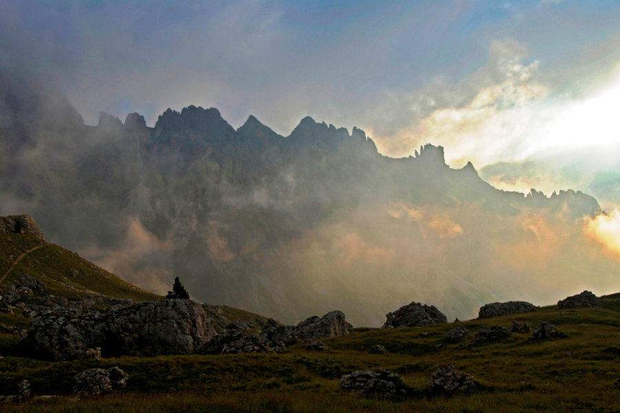 Восточные Доломиты Трентино – это затерянный мир массива Антермойя и лунные пейзажи высокогорья группы Селла. Это отражение неба в блестящих зеркалах высокогорных озер, панорама Селлы с массива Сассолунго, подъем к Розенгартену по знаменитой тропе перегонщиков овец, неспешно открывающей всю горную цепь по мере подъема, ночевка у подножия Мармолады, под ледником ее северных склонов, уют горного приюта и вечер у камина после интенсивного дневного перехода. В этом походе малолюдные тропы ведут участников через массив Монцони, а перевал Пассо Ролле открывает эффектную панораму группы Пале ди Сан Мартино с ее красноватыми на закате вершинами. Участников ждут незабываемые впечатления на переходе через пустынный, в прямом смысле слова – неземной, ландшафт плато Пале ди Сан Мартино – каменистый, практически без воды и растительности.