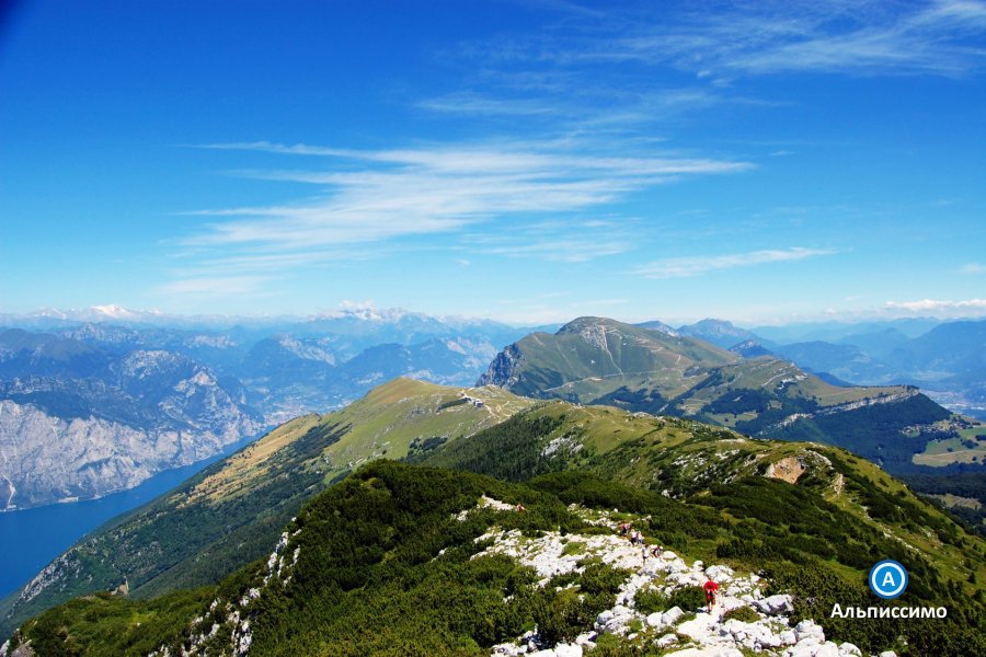 Из Лимоне маршрут переходит на восточный берег – это приятная получасовая поездка на пароме, после чего нам предстоит преодолеть протяженный подъем на южную оконечность хребта Монте Бальдо. Этот горный массив является основной доминантой региона. С Монте Бальдо видна равнина реки По, Доломитовые Альпы, обширные ледники Адамелло, а в ясный день на юге – даже Апеннины. Последующий переход по гребню Монте Бальдо будет длительным и запомнится панорамами озера Гарда и окружающих его горных массивов с высоты 2000 метров.