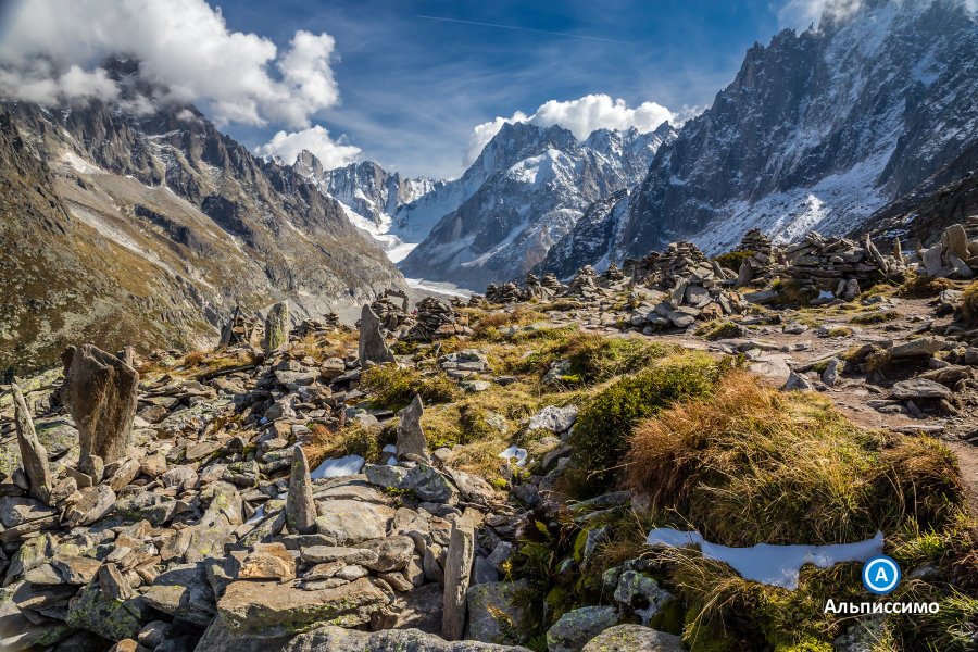 Маршруты нашей программы охватывают непосредственно массив Монблан, полностью Грайские Альпы, частью которых и является Монблан, западную оконечность Пеннинских Альп, а также стоящий напротив Монблана массив Эгюий Руж на французской стороне. Именно со склонов окружающих Монблан массивов открываются лучшие панорамы Монблана. Поднявшись по ущельям Монблана мы сможем подойти к ледникам и увидеть заснеженные круглый год склоны вне оживленных троп, проходящих вокруг Монблана.