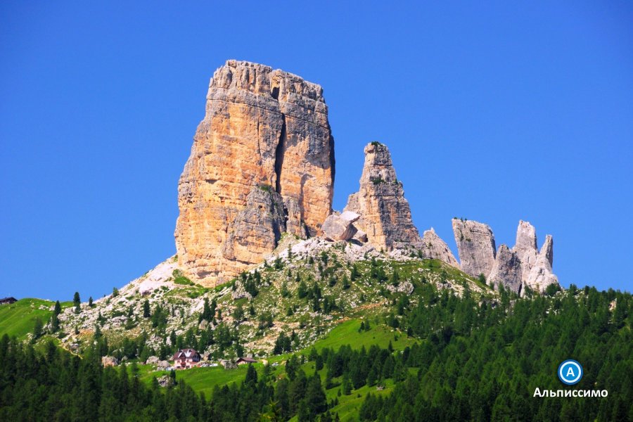 В первый же день похода нас ждет панорама группы «Пять Башен». Это одна из самых необычных природных архитектур Доломитовых Альп - она вызывает ассоциации с руинами старинного замка. Мы останавливаемся на ночь в приюте неподалеку, чтобы увидеть эти причудливые руины на закате.