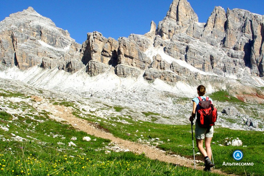 День 4: Тропами Альта Виа №1Подъем 1340 м, спуск 1170 м. Протяженность 18 км. Время на маршруте 7 ч. Возможен упрощенный маршрут. Наш путь сегодня проходит через северные ущелья группы Фанес и по склонам долины Валь Салата, разделяющей горные группы Фанес и Сенес. Мы по-прежнему будем находиться на территории заповедника в окружении нетронутой дикой природы. За полдня мы достигаем группы Сенес и приюта, где у нас запланирован ночлег. Немного отдохнув и оставив в приюте рюкзаки, мы совершаем радиальный выход с подъемом на вершину Croda del Becco (2818 м). С вершины мы сможем увидеть 360-градусную панораму Доломитов, а также озеро Брайес, лежащее на 1300 метров ниже вершины у ее подножия. |