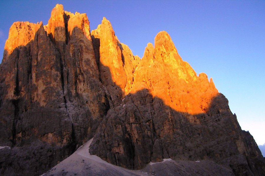 День 6: Перевал Пассо РоллеПодъем 450 м. Спуск 950 м. Протяженность 9 км. Время на маршруте 4 ч. Пришло время покинуть плато и посмотреть на него со стороны. Лучше для этого место – перевал Пассо Ролле (1980 м). Маршрут спускается с плато по красноватому западному склону Пале, откуда вам предстоит короткий переход на перевал. К обеду вы достигнете горного приюта на перевале, где у вас будет выбор из нескольких красивых маршрутов на вторую половину дня. В районе перевала располагается обширная открытая область, занятая лугами, с одной из лучших панорам Пале ди Сан Мартино. Фотографам здесь открываются большие возможности – в районе Пассо Ролле есть сразу несколько эффектных точек для съемки Пале ди Сан Мартино. |